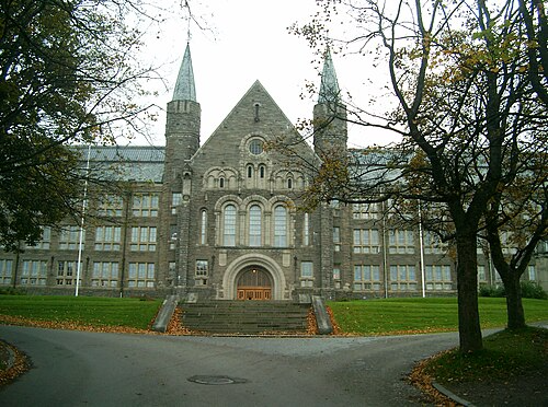 贾埃弗本科母校挪威技术学院的主楼。挪威技术学院与本市几所大学于1996年合并为挪威科技大学(Norwegian University of Science and Technology,NUST)。| 图源:wikicommons