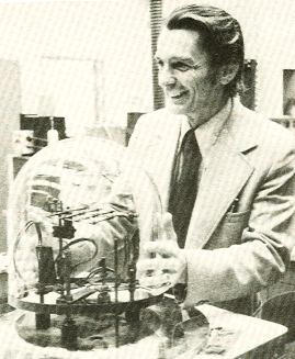 贾埃弗与蒸镀仪合影。| 图源:Edison Tech Center