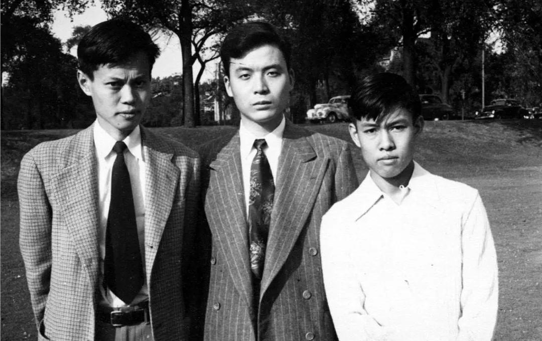 左起:杨振宁、邓稼先、杨振平(1949年摄于芝加哥大学)