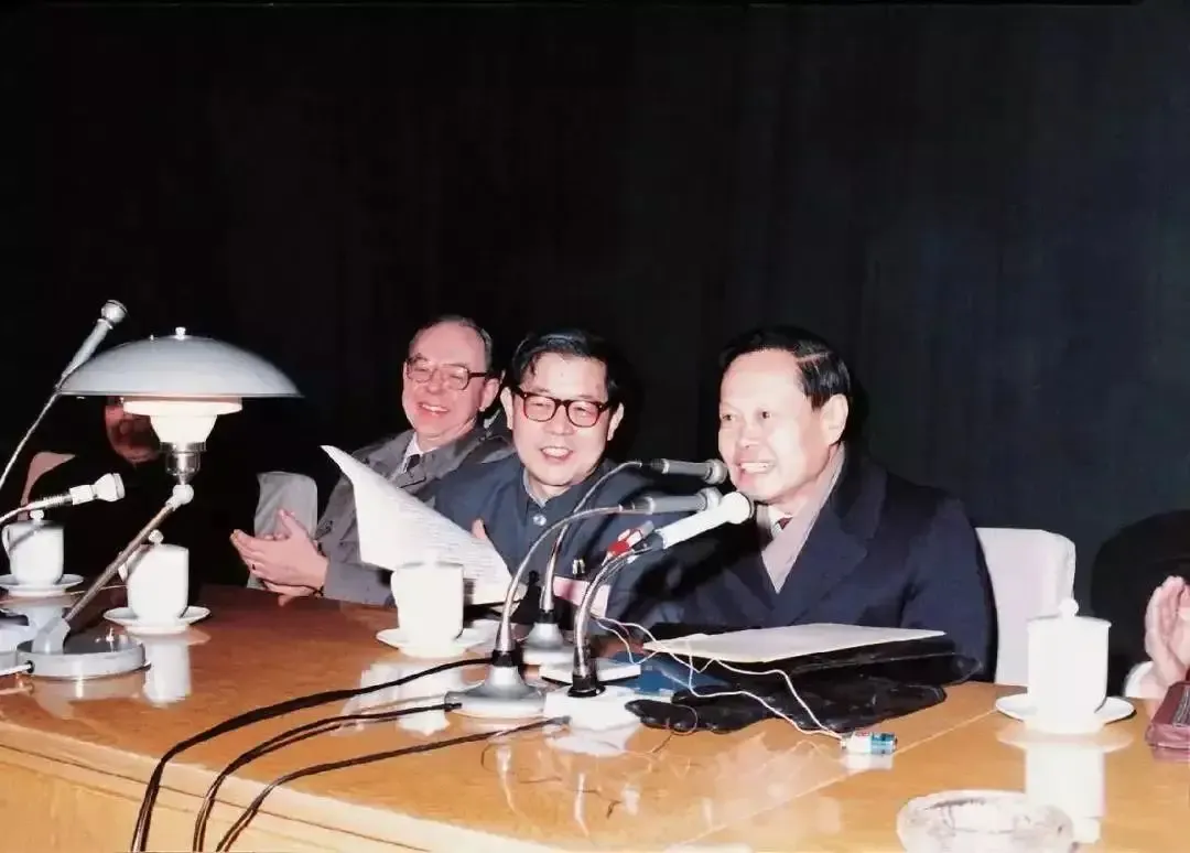 “杨-米尔斯规范理论”学术会议上,左起:米尔斯、周光召、杨振宁