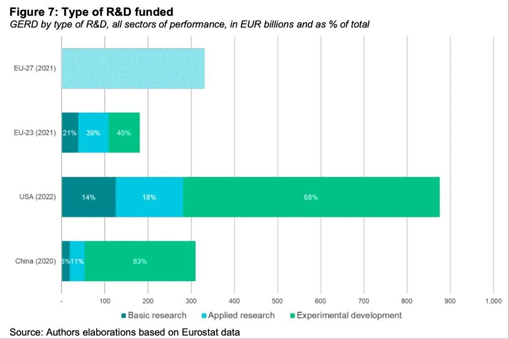欧盟、美国和中国研发活动类型分配对比 | 图源:《比较分析》