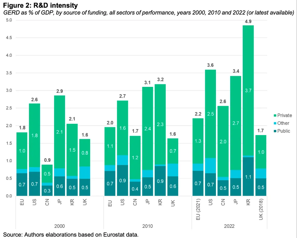 2000年、2010年、2022年主要经济体研发强度变化趋势 | 图源:《比较分析》