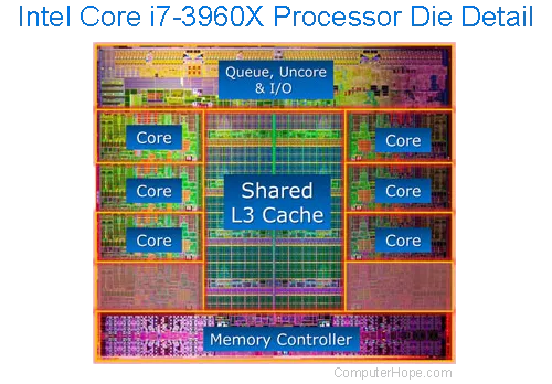 图4 2011年发布的高端桌面处理器 Intel Core i7-3960X processor die 示意图,16M的L3缓存占据巨大的面积。图源:silentpcreview.com