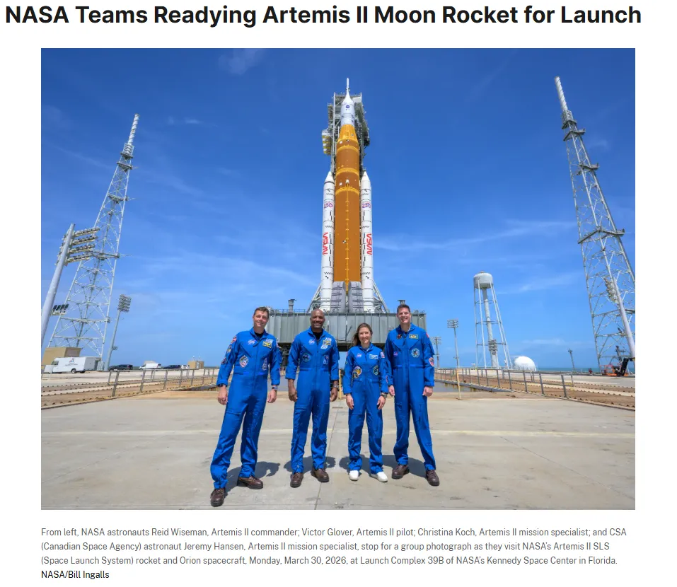 美国东部时间4月1日下午6点35分,搭载四名宇航员的“猎户座”(Orion)飞船从佛罗里达州肯尼迪航天中心39B发射台升空,随着阿尔忒弥斯2号(Artemis II)的发射成功,他们踏上了人类自1972年以来首次绕月飞掠的旅程。