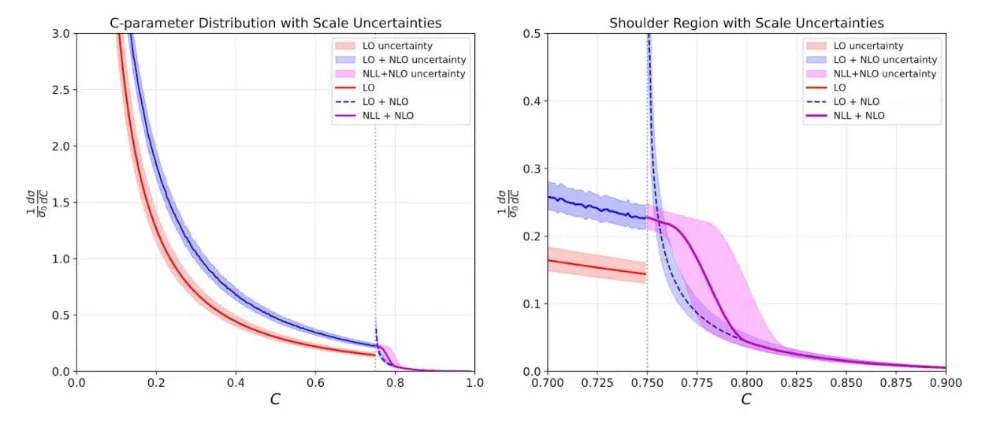 “撰写一篇关于e+e-碰撞中 C-参数 Sudakov shoulder 在 NLL(次领头对数)阶的重求和论文。要求包括:因子化(factorization formula)公式的推导,与先前结果的对比,使用 EVENT2 蒙特卡洛计算进行数值校验,以及最终给出带有不确定性带的重求和分布图。”